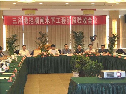2010年7月28日,水利部淮河水利委员会在连云港市主持召开了新沭河治理工程三洋港枢纽挡潮闸工程水下工程(土建部分)验收会议。我公司作为项目混凝土技术单位的咨询单位参加会议。 三洋港挡潮闸位于江苏省连云港市郊临洪口,是经国家批准,由中央和江苏省人民政府共同投资建设的大型工程,为Ⅰ等大(1)型工程,主要建筑物为1级。挡潮闸闸室每孔净宽15m,共33孔,总净宽495m,总宽576.92m,闸底板顶高程-2.0m,闸室采用钢筋混凝土开敞式结构;闸墩顶高程7.00m,中墩厚2.2m,缝墩及边墩厚1.45m;岸墙采用钢筋混凝土空箱结构,灌注桩基础;排水闸布置在挡潮闸与泓道之间,共3孔,单孔净宽6.00m,闸底板顶高程-2.0m,采用钢筋混凝土涵洞式结构。 该工程为近海工程,需重点解决盐害(主要为氯盐和硫酸盐)侵蚀和大体积混凝土抗裂等问题。我公司承担了该工程的高性能混凝土配合比设计及其耐久性关键技术控制研究,在闸底板、闸墩等重要部位主要采用了大掺量磨细矿渣、聚丙烯纤维等技术措施来解决混凝土耐久性问题。挡潮闸工程于2009年8月中旬开工,至2010年7月中旬,完成主体土建工程的建设任务,提前完成了建设目标,实现了总体部署。累计完成混凝土浇筑15万立方米,高峰期月混凝土浇筑量达3万立方米,创江苏水利建设之最,工程施工质量已经江苏省质量监督中心站评定,质量优良。 本次验收会议中,与会领导和专家充分肯定了工程建设取得的成绩。