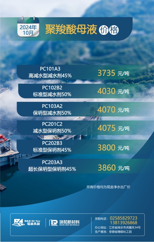 【聚羧酸系减水剂母液月度最新价格】丨2024年10月